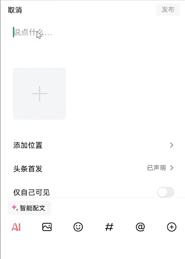 然后我们下载完之后,我们就直接打开这个今日头条这个app,然后打开之后,我们这边在这个上面,就是在发布这里搜索旁边,这有个加号,这有个发布,我们一般就是说发布一个微头条就好了。然后在这边,也跟那个在跟在电脑端是一样的。