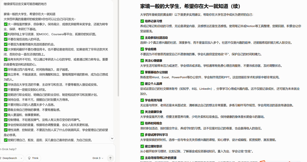 这里我们看到上面基本都是大一新生这个关键词,还有没有其他更多的标题关键词,这里之前我在搜索流量推荐流量标题的课程里讲到过一个提示词来发散关键词的,用一下看看。