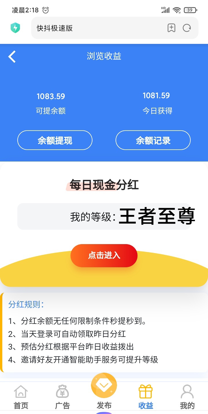 「快抖极速版首码」全新玩法,项目核心:自栋看广告+挂机唰视频(广告)+签到福利,单机每天轻松赚取30-100+米,无需养号,轻松躺赚着赚零花。