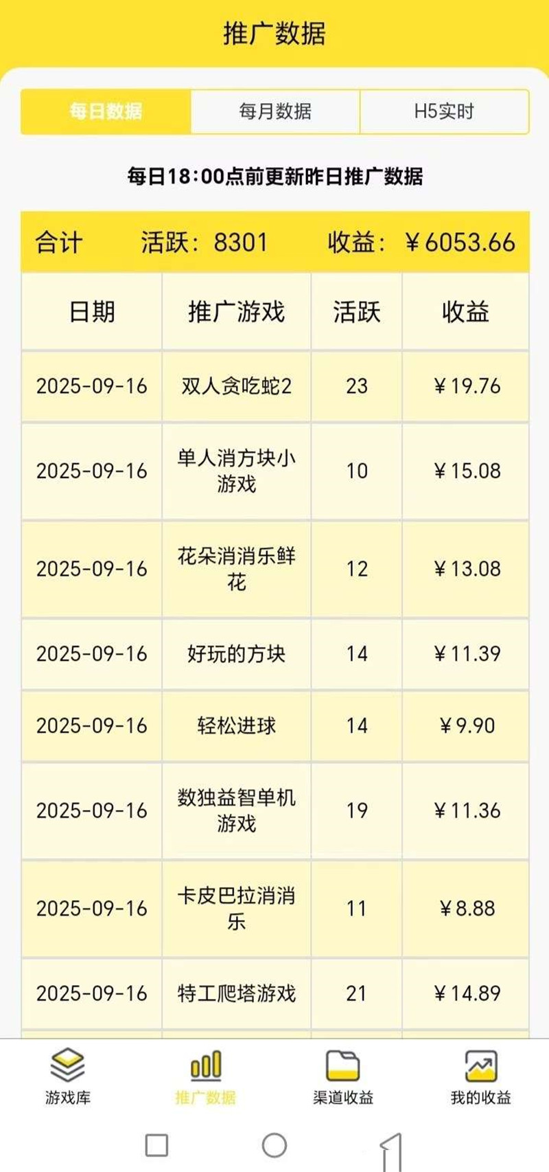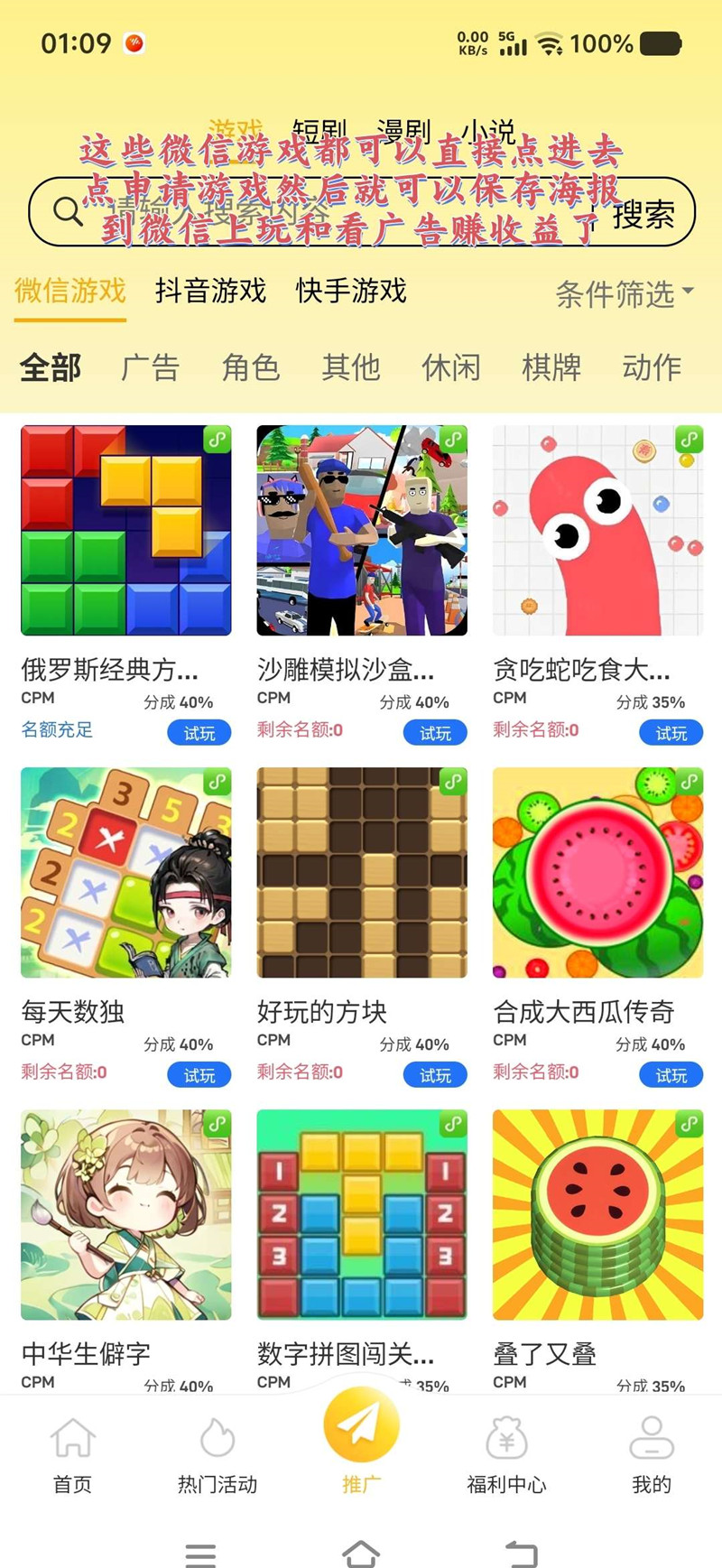 1 个微信每天最多 10 款游戏,单款游戏插 5~8 条广告。