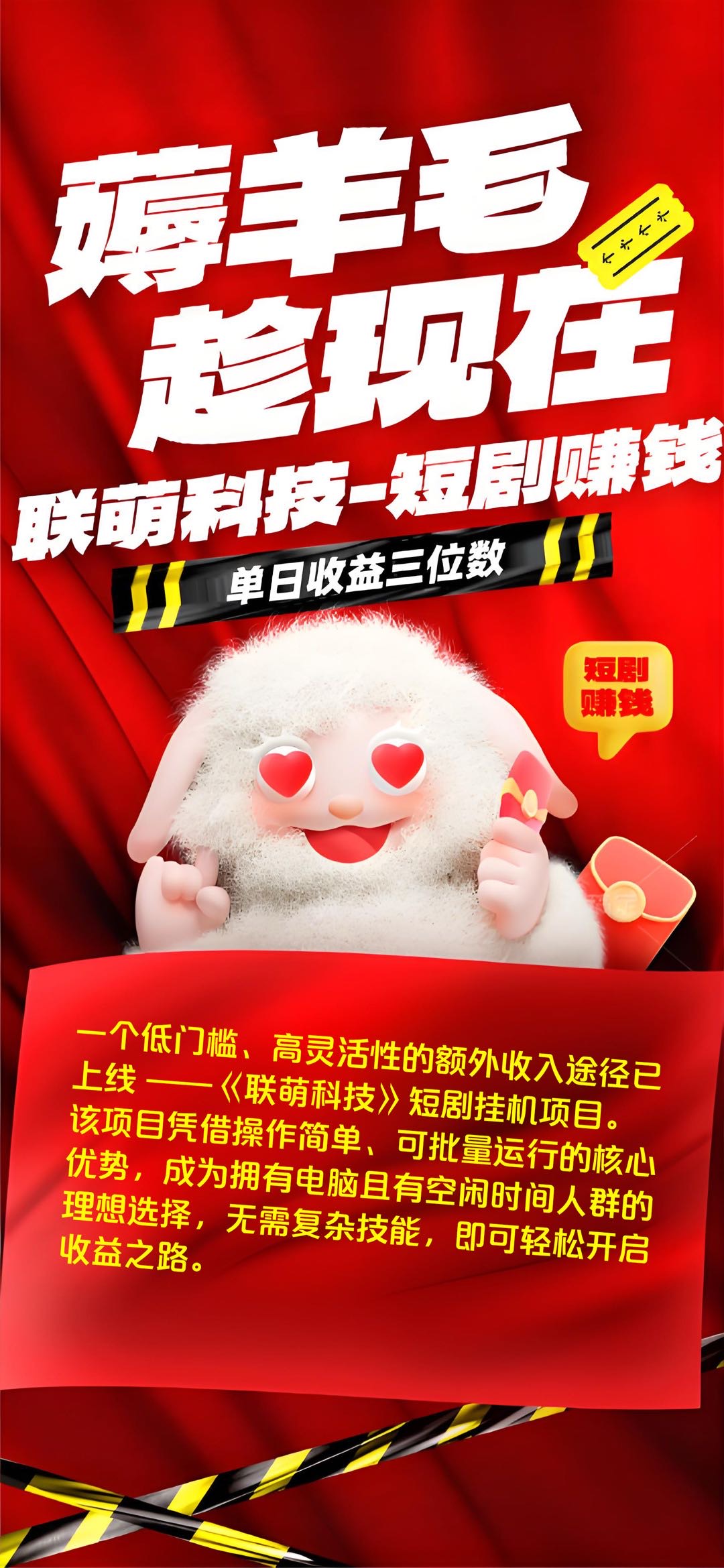 正文 短剧全自动挂机观看,日入可观 k331155 V评论者 /今天 /0 评论 /92 阅读 1013 内容描述1.项目名称联萌科技短剧2.项目介绍通过云端服务器软件实现自动观看短剧获的收益全新玩法,目前红利期,想挣米的来3.合作要求手机电脑均可做,软件自动运行4.收益利润单机收益20十,另有下级10%推广收益,提现两小时到账5.费用说明装机教学免费,前期只有软件云端服务器费用6.扶持帮助有推广能力的团队长工作室有待遇扶持,保障收益【对接项目加徽信】徽信:qwen5689(备注:挂机)。 。【对接项目加徽信】徽信:qwen5689(备注:挂机) 投诉/删帖