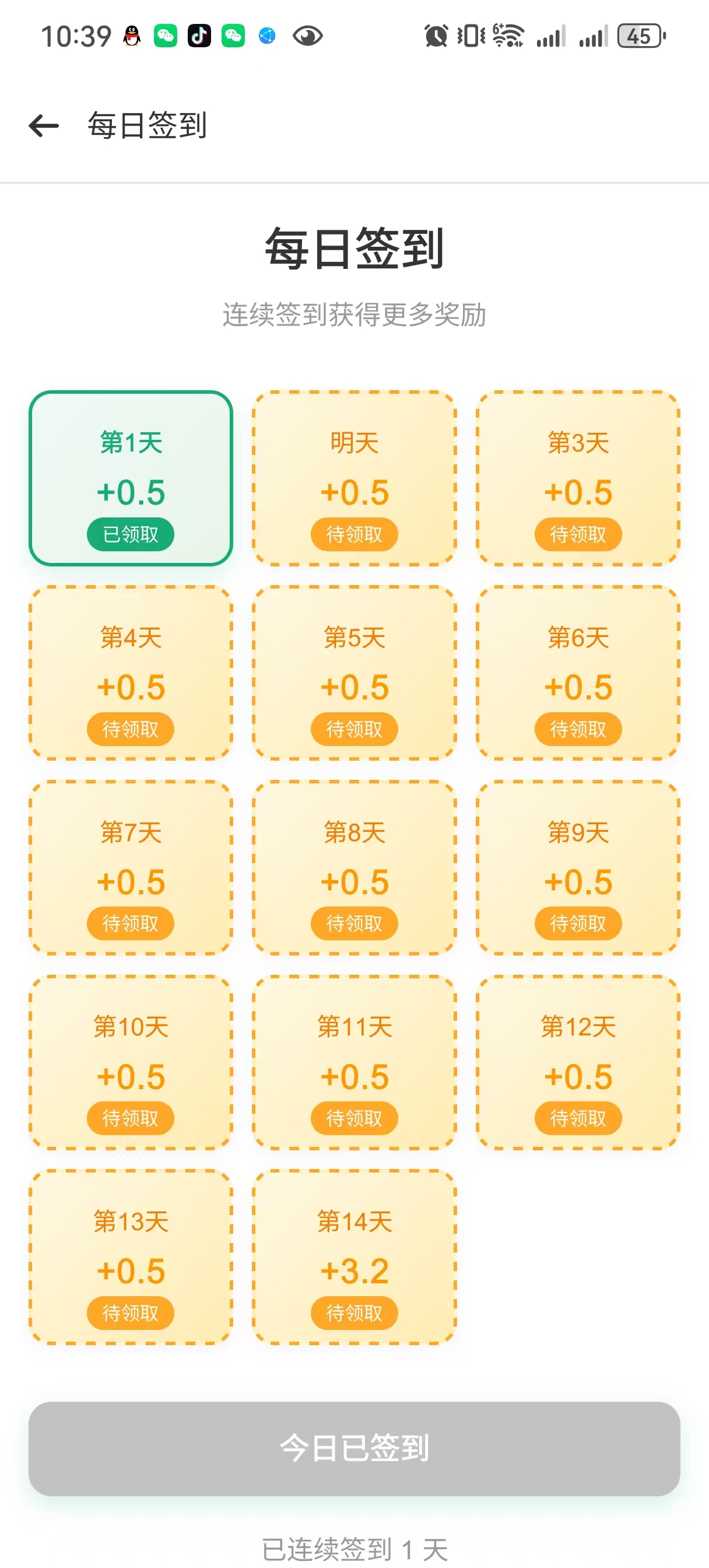 10月17日开放签到福利,平均每日签到收益5元人 民 币,可提现