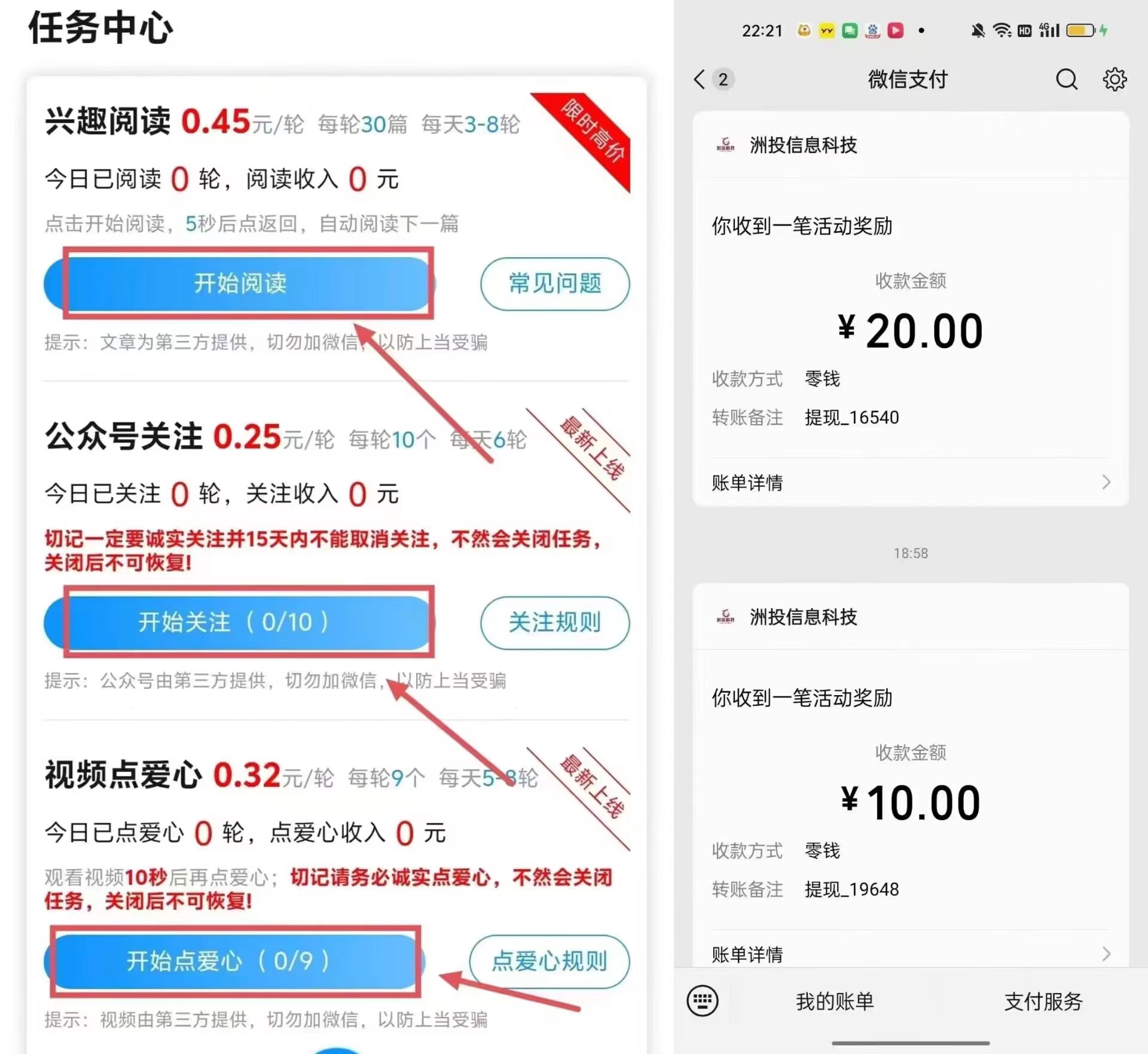①阅读任务0.26元/轮,每天5-10轮,每轮25篇文章;还有AI问答任务,每个回答0.2元,分成70%