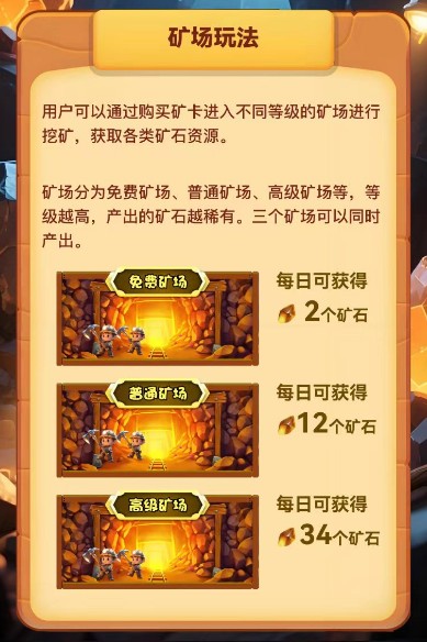 矿工分为普通至神话品质,等级越高产出矿石越多(例如1级矿工每日产10个矿石,3级产30个)。