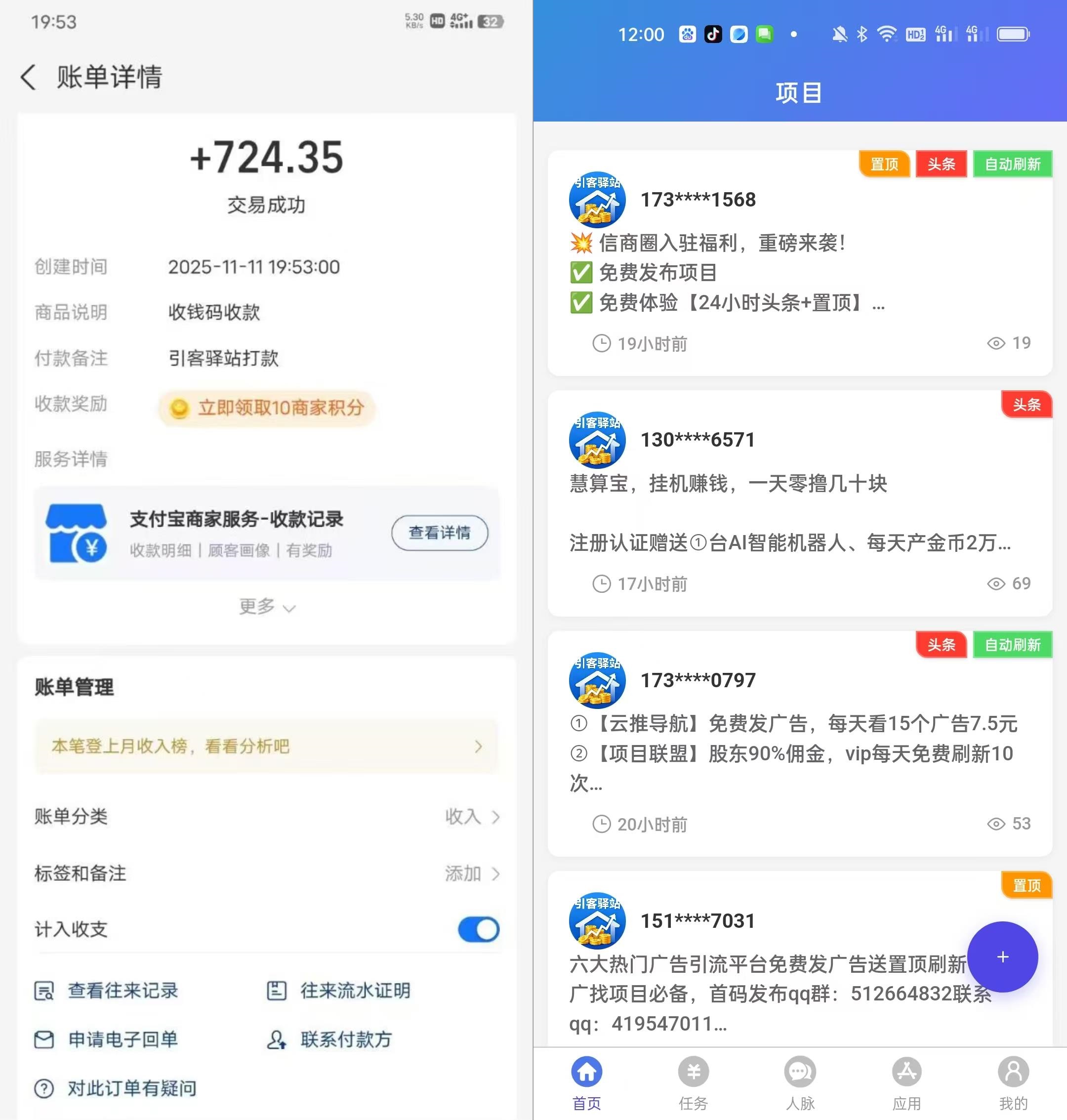 每天可以免费发布一条项目信息,引流推广效果很好,