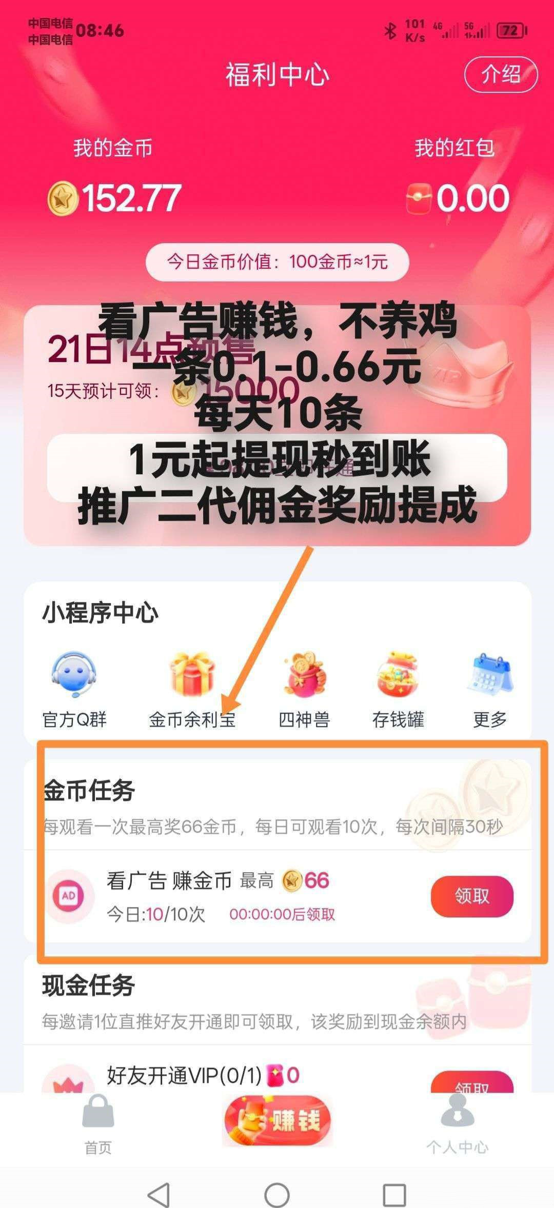 正文 首码【闪聚客】纯赚广告,不养机保底收益高,团队模式,每天天轻松赚 k331144 V评论者 /今天 /0 评论 /92 阅读 1124 首码【闪聚客】纯赚玩法,广告赚,不养机保底收益高,团队模式,邀请日入百米,一天轻松几十块!每天看10个广,得150-660金币,金币兑换红包,100金币=1米,满1米可提现!邀请收益:直推金币收益10%,间推5%项目对接:ws565188 或 ynm6898。 。项目对接:ws565188 或 ynm6898投诉/删帖