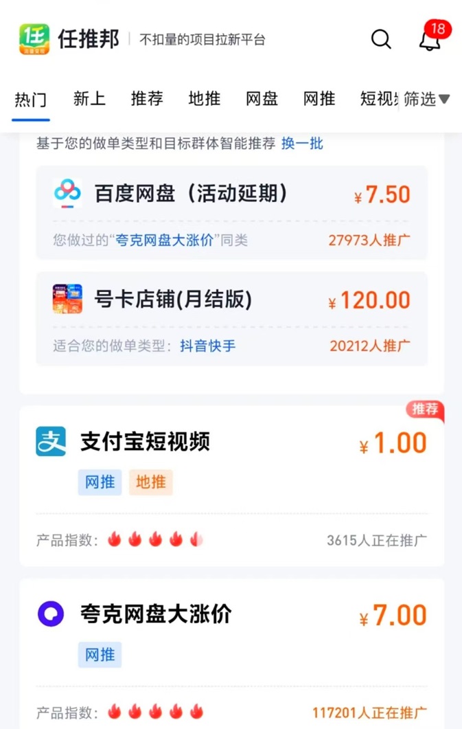 任推邦上线了五六十个拉新项目,每个项目都是行业置顶价格,免费注册就可以推广,做app拉新首选平台,人人都能免费注册做代理。