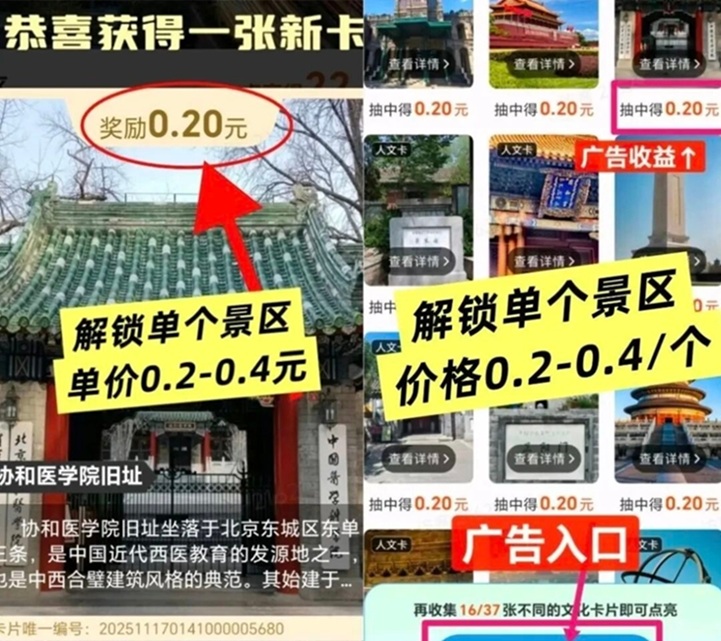 哇区每获得一张新卡都会有奖励每解锁单个景区都会有奖励,每解锁点亮一个城市都有奖励城市级别越高奖励越多。