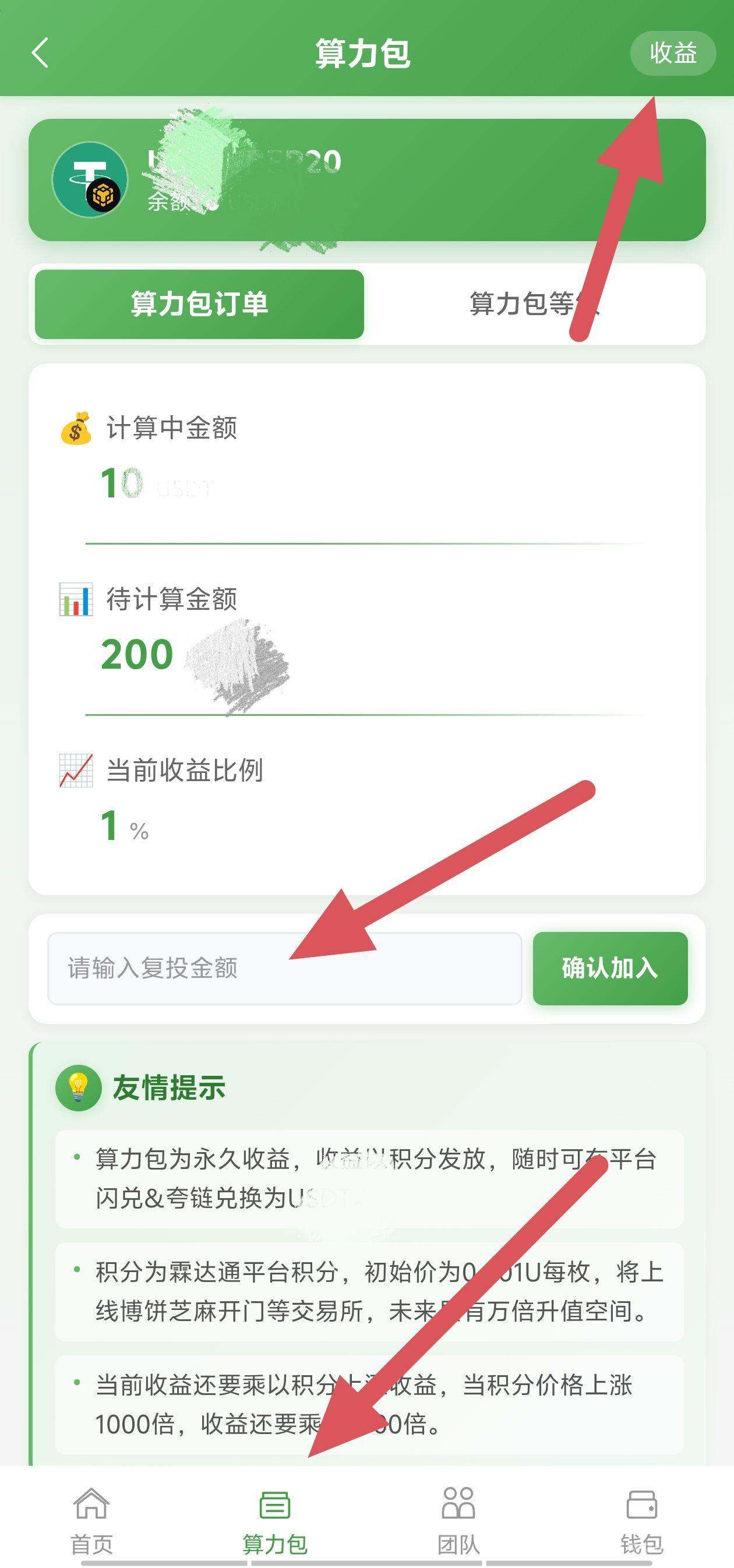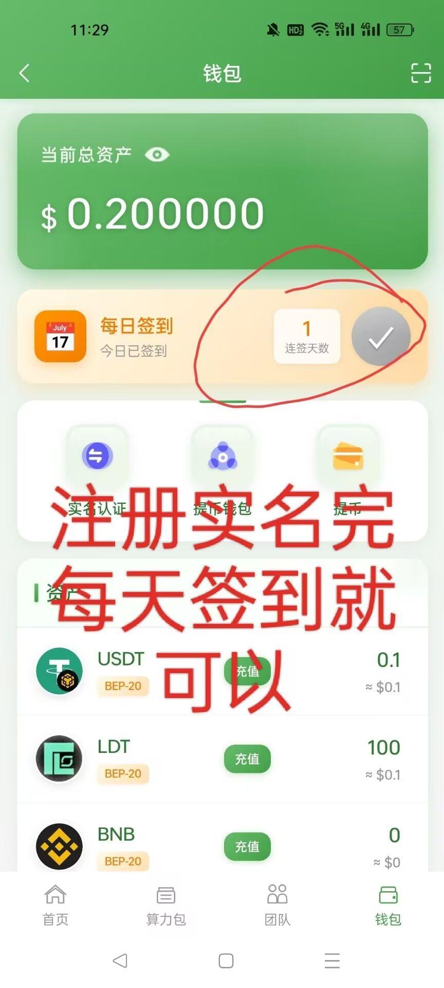新人注册实名都会送一个10永久算力包,FT拿收易,无广告无视频一键签到
