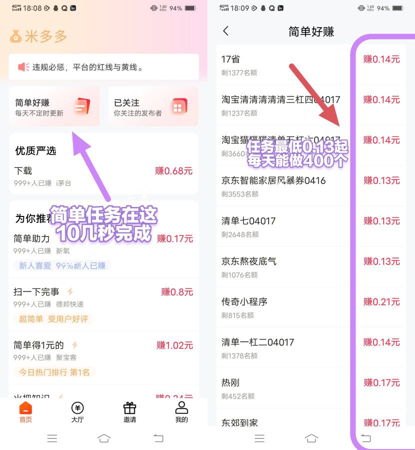 正文 米哆哆 任务简单 长期稳定 wang6le V评论者 /今天 /0 评论 /93 阅读 0101 米哆哆(米多多)是一款专门为想赚零花钱的人设计的APP。每天只需完成一些简单任务,比如助力、点赞、关注等,十几秒就能搞定。这些任务不仅操作简单,而且数量充足,每天花点零碎时间,就能轻松赚到20多元。对于那些时间不多但又想赚点外快的人来说,米哆哆无疑是一个非常合适的选择。 平台主打 微信关注 小程序 单价高 一单0.17 每天可以重复做。任务每天重复做 强烈推荐复制网址浏览器下载或浏览器扫码下载http://ma.shangduobao.pro/mdz-28277426投诉/删帖