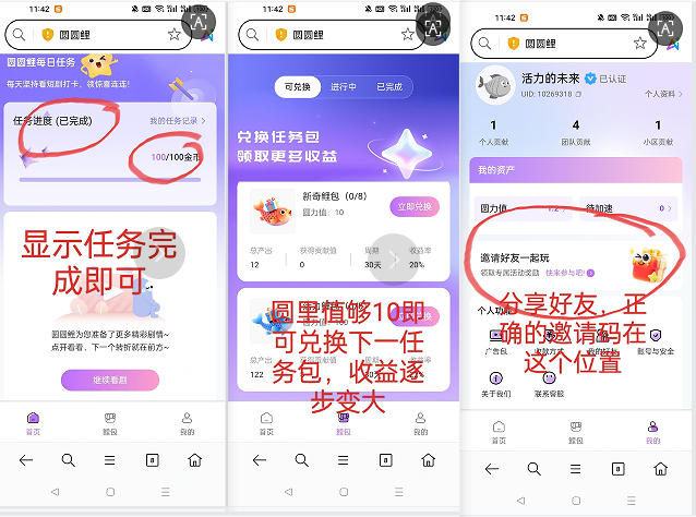 💖圆力合规收益来源4种方式:可转赠,可购物,可兑换鲤包继续增值,可兑换广告包直接合规收益来源,
