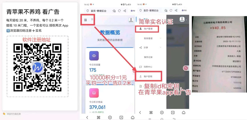 正文 【青苹果纯】简单无插件看广告赚米,每天提每天到米! k221155 V评论者 /今天 /0 评论 /91 阅读 0113 首码上线青苹果,这是一款无需养机的简单看广告项目!已亲测提现到账!大致玩法:不用养机,一个广告0.2固定的收益,建议用2个手机看!(广告不乱跳),也就是看完4块钱!青苹果,看广告,一个广告0.2元,(多机多号,多实名)日入几十米!不需要养机,单机每天看20个广告上限=4元,积分每天晚上12点自动到余额12元起提,1号2机一ip,一个密钥可以在两个安卓手机的上看(无插件一会就看完)最强变现推荐!项目对接:wsws5500。 。项目对接:wsws5500投诉/删帖