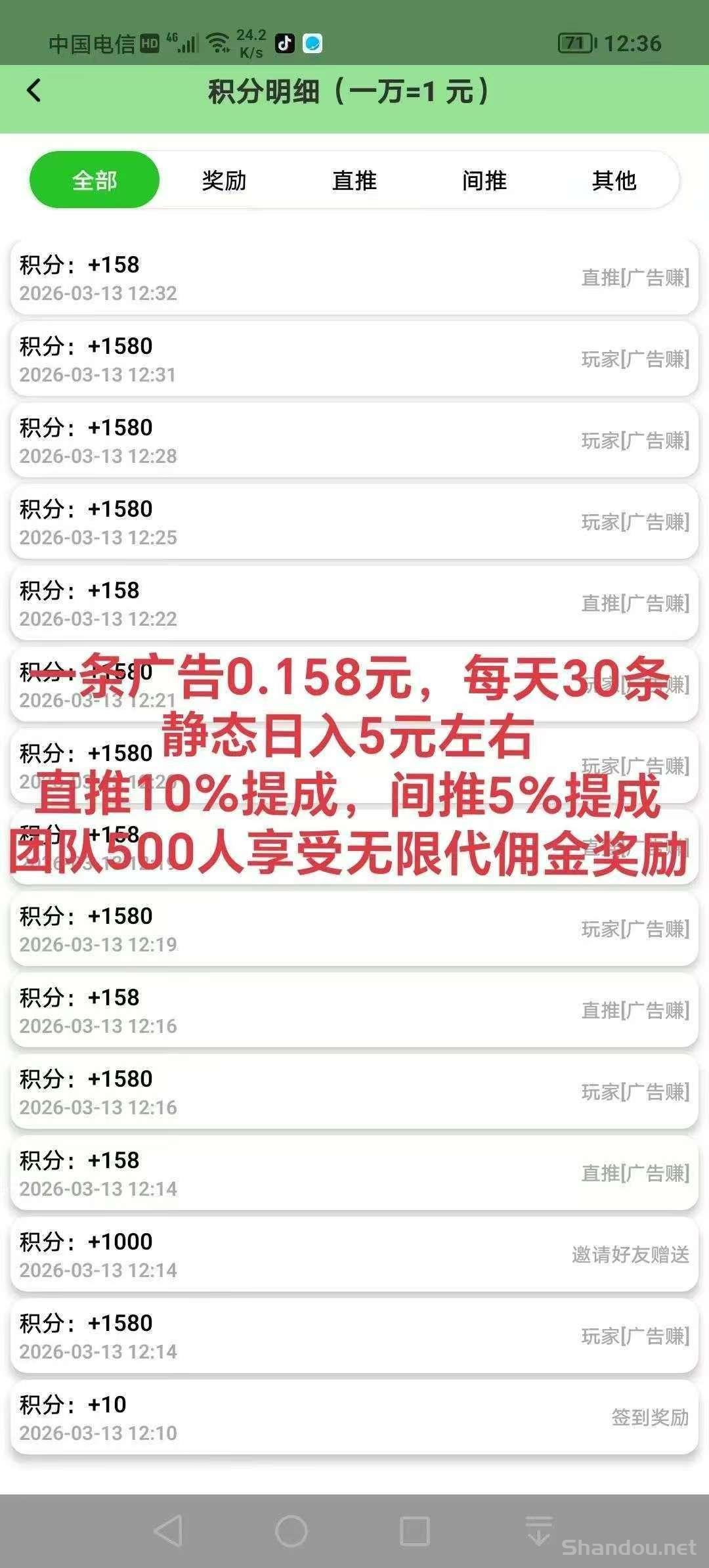 正文 首码树影时代,零撸看广告赚钱,每日不养机看30条广告,一条广告0.158米 手机兼职 V评论者 /03-13 /0 评论 /226 阅读 0313 温馨提示: 文章均来自网络用户自主投稿,风险性未知,涉及注册投资需谨慎,因此造成损失本站概不负责! 首码树影时代,零撸看广告赚钱,不养机静态日入5米左右!每日不养机看30条广告,一条广告0.158米看广告,阅读文章,做任务,玩游戏都可以获得大量的现金奖励直推10%佣金奖励提成间推5%佣金奖励提成团队累积达到500人升级服务商享受无限代佣金奖励提成满1元即可提现重点:看广告不养机,稳定输出速度上车占位吃肉了邀请码必填:596475投诉/删帖