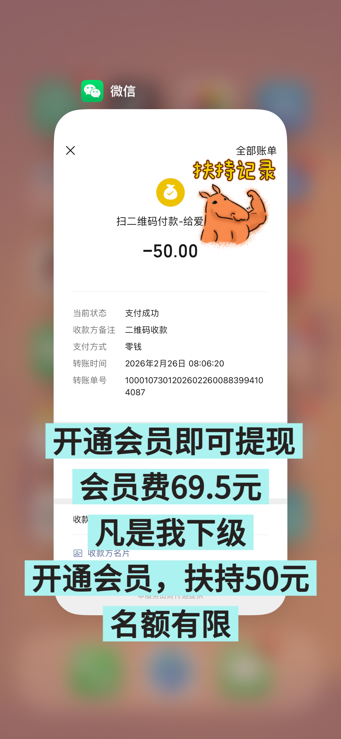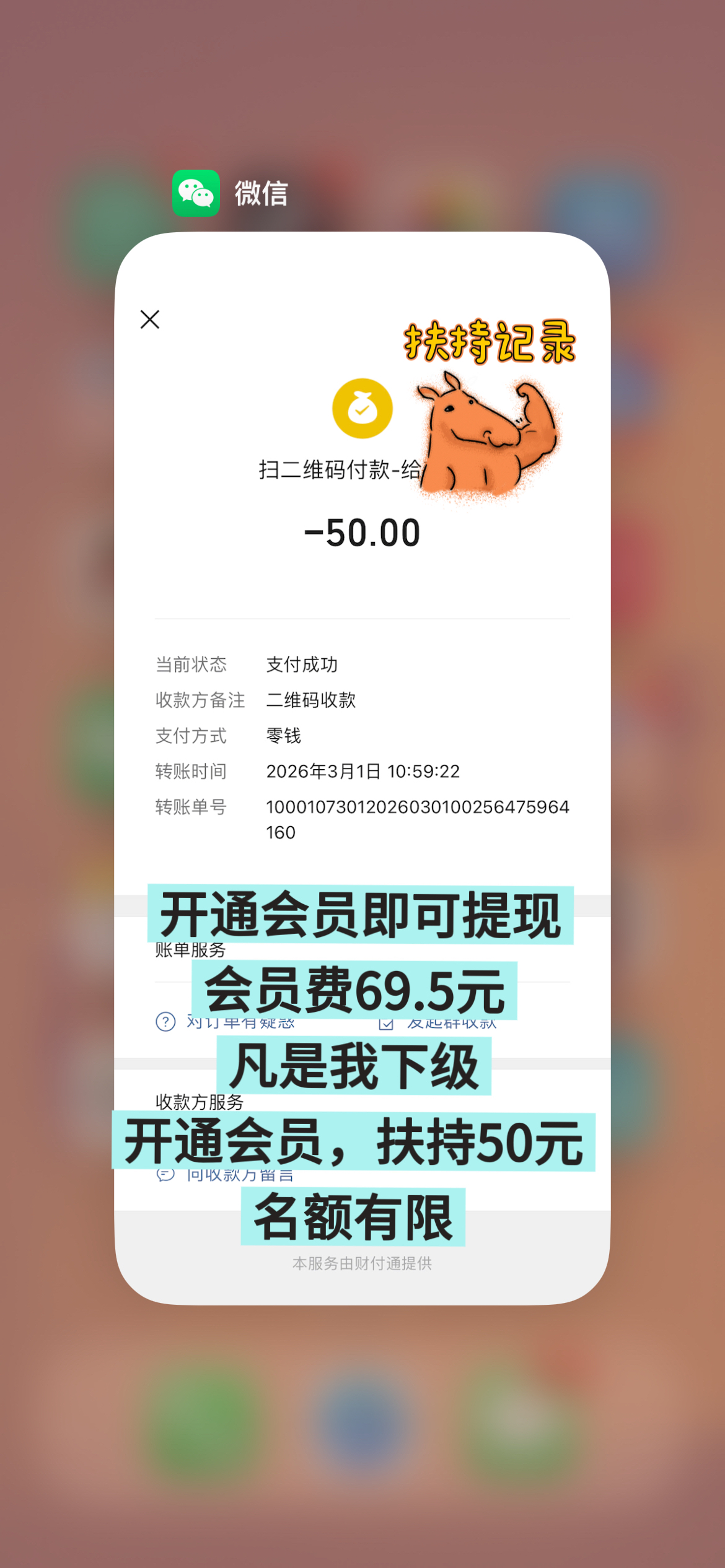 注册完成后,你可以添加我的联系方式,或者在App内私聊我。只要核实你是我直接推荐的伙伴,只要是我的下级,开通后截图付款记录+你的趣阅ID+收款码发给我,立刻返50元扶持金!名额有限,满额立刻停!