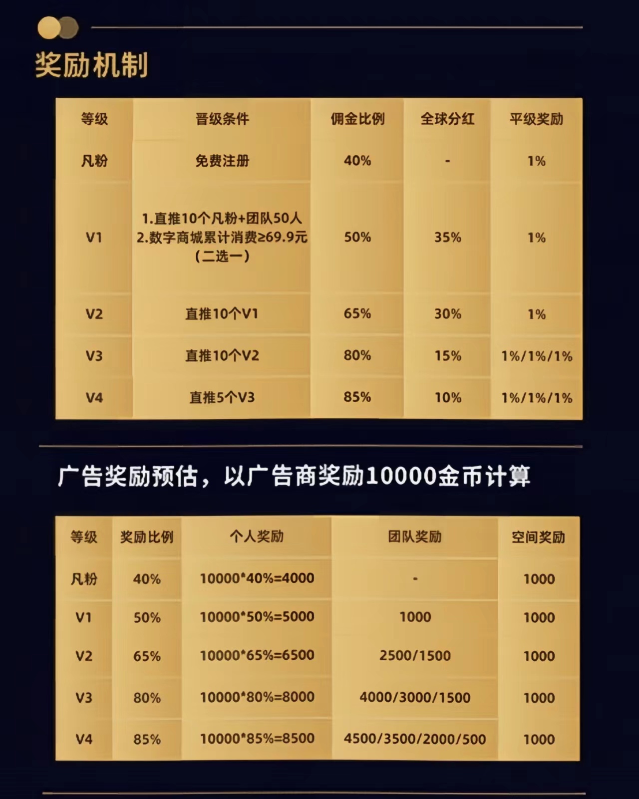 它采用优化版三三复制九层网体,满员25923活跃用户,单日网体贡献3919米,双循环点位+九层搭建完成,日收益可达7838米!下级看18条广告能向上给九层上级循环贡献2次收益,核心关键是强制活跃:每日看18条空间广告(6条保活跃),未完成奖励清零转全球分红,直接跌落排位,后续再活跃需重新占位,空位由团队新人滑落补位,持续向上贡献收益。