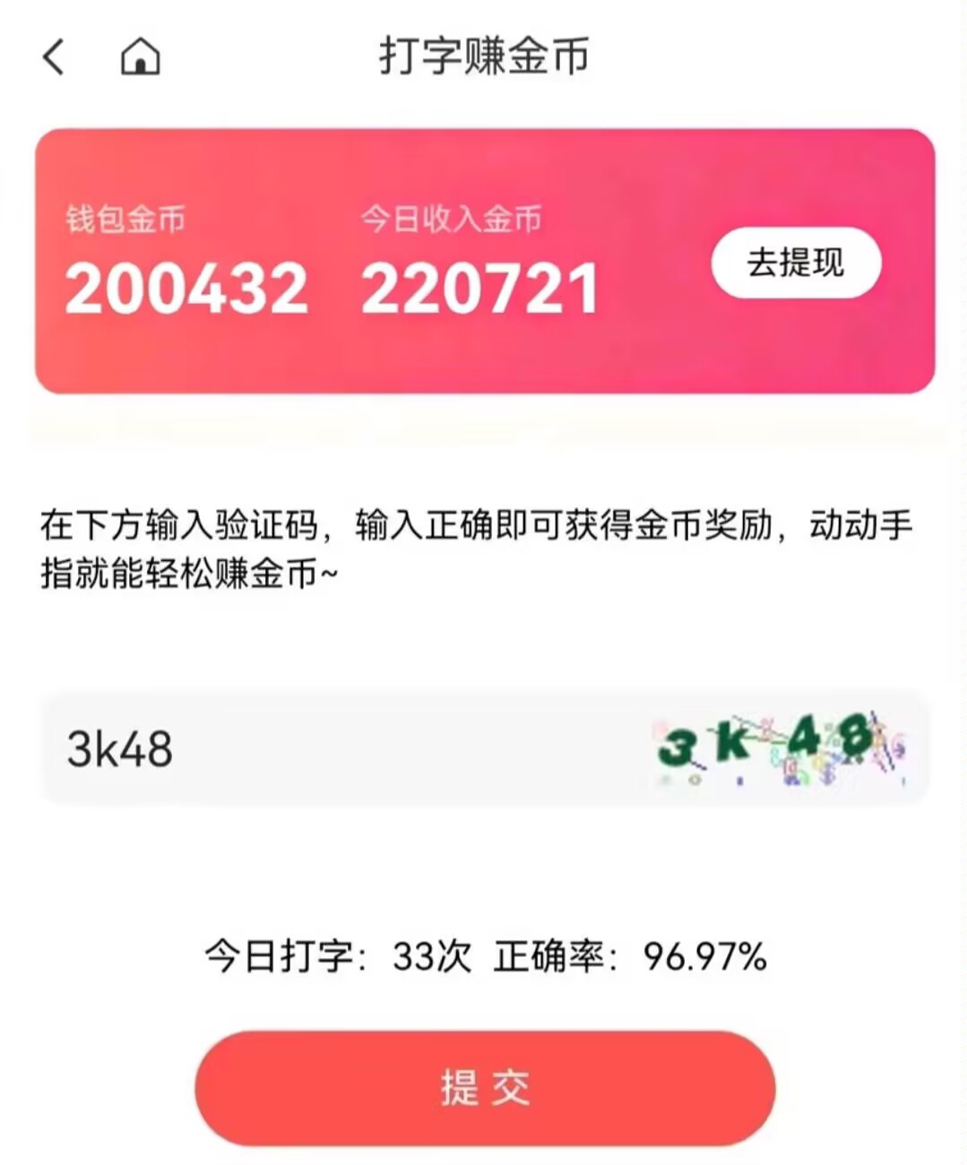 正文 新出打字赚金币,一天稳定20+,赶紧撸! 免费优质项目 V评论者 /昨天 /0 评论 /95 阅读 0202 新出打字赚钱,简单录入验证码比如egc3这样的基本,都是3秒完成一次录入,一次录入得0.05-0.3元,一天稳定几十加,赶紧撸,新出,活动力度比较大,没什么技术含量,就看手速快不快了,昨天玩了一下,提现到账了,苹果机玩不了,1万金币=1元,满1元即可提现,提现秒到账,免费项目,不收一分钱下方图片有邀请二维码,用浏览器扫码下载APP即可开始打字赚钱投诉/删帖