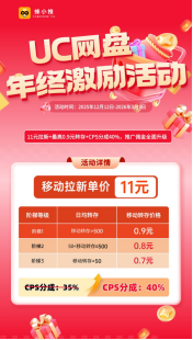 UC网盘年度激励活动重磅上线,红利力度直接拉满,多重收益叠加之下,拉新收益直接实现翻倍。其实本次激励活动不是简单的佣金上涨,更是一次低成本、稳收益的增收窗口,只要找对方法,借助活动东风,普通人也能轻松实现收益翻倍,稳稳吃透这份专属福利。