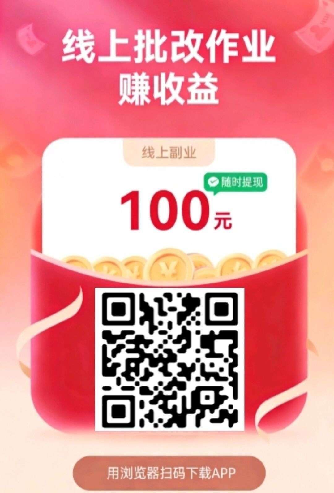正文 手机批改作业(小学语数英),提供标准答案,一天日入100+ 免费项目 V评论者 /03-21 /0 评论 /193 阅读 0321 温馨提示: 文章均来自网络用户自主投稿,风险性未知,涉及注册投资需谨慎,因此造成损失本站概不负责! 全网唯一正规批改作业副业平台按照平台给的标准答案批改即可,每个批改任务明码标价,完成后佣金秒入账一天收入无上限,多劳多得,满10元即可提现,提现秒到,仅限安卓机用户免费项目,不收一分钱,如果自己是家长或者老师,自己也可以发布批改作业任务下方图片有平台邀请码,用浏览器扫码下载APP即可批改作业赚钱投诉/删帖