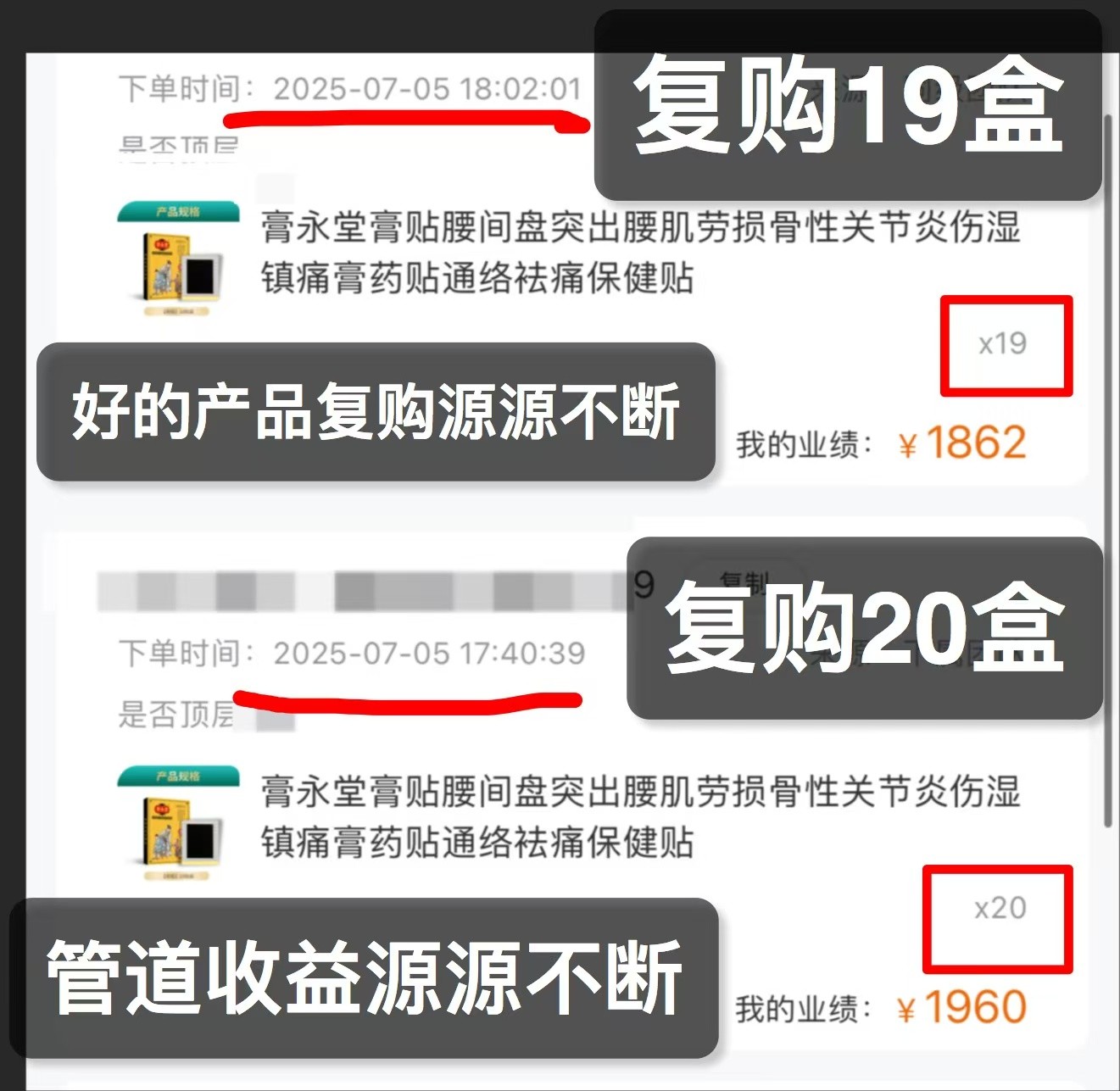 膏永堂好评回头客非常多,原因是产品好,产品很稳,效果好,口口相传