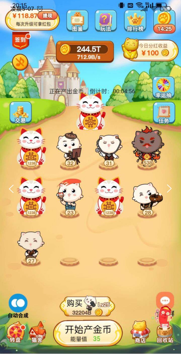 每次合成新等级必掉红包,38级招财猫直接锁永久分红,平台90%广告收入实时到账,余额秒提微信,多号多撸,稳赚三年。