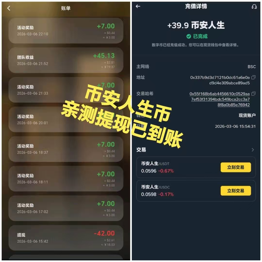 正文 必安人生2026黑马项目,无插件广告,打造长期管道被动收益! 魔熊 V评论者 /03-09 /0 评论 /167 阅读 0309 温馨提示: 文章均来自网络用户自主投稿,风险性未知,涉及注册投资需谨慎,因此造成损失本站概不负责! 首码纯零撸橡木币安人生🔥 抓紧上🚗🚀币安人生🔥 抓紧上🚗🚀,亲测提现到账,邀请3人可以无门槛提现到币安交易所!步骤(🈚️任务每天自动释放)①使用邮箱号注册。实名认证跳转zfb②底部商店进入_买第一个入门会员卡,买了以后放着就行了。每天自动释放。每天自动产出41个,链上现在一个0.05油,现在每个0.45米!①静态复投一次可无限提。②邀请三好友,🉑无门槛提现客服V:jindoumangguo投诉/删帖