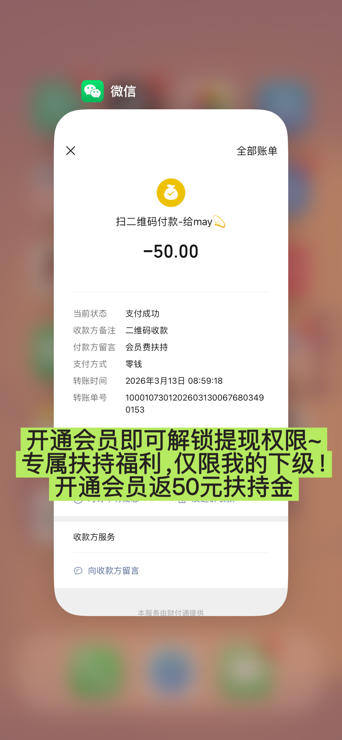 注册完成后,你可以添加我的联系方式,或者在App内私聊我。只要核实你是我直接推荐的伙伴,只要是我的下级,开通后截图付款记录+你的趣阅ID+收款码发给我,立刻返50元扶持金!名额有限,满额立刻停!