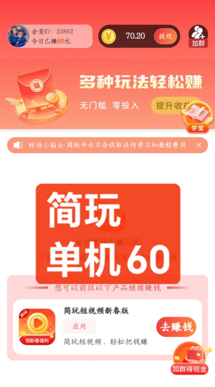 简玩app,一个刷视频看广告赚钱软件,每天都有保底拿,简玩这个很多人都爱的广告零撸软件,今天它又来了,为什么给大家分享简玩这个平台?是因为简玩最近又上线了一些福利活动。