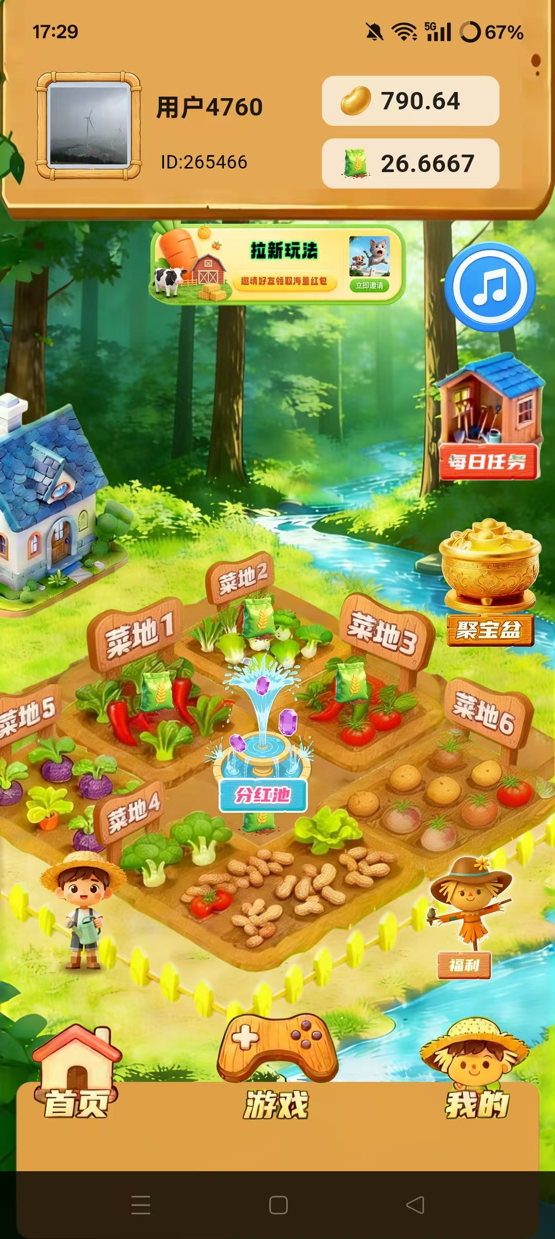 获得的金豆可投入到各档菜地里面,每日消耗肥料释放出金豆,菜地等级越高手续费越低。