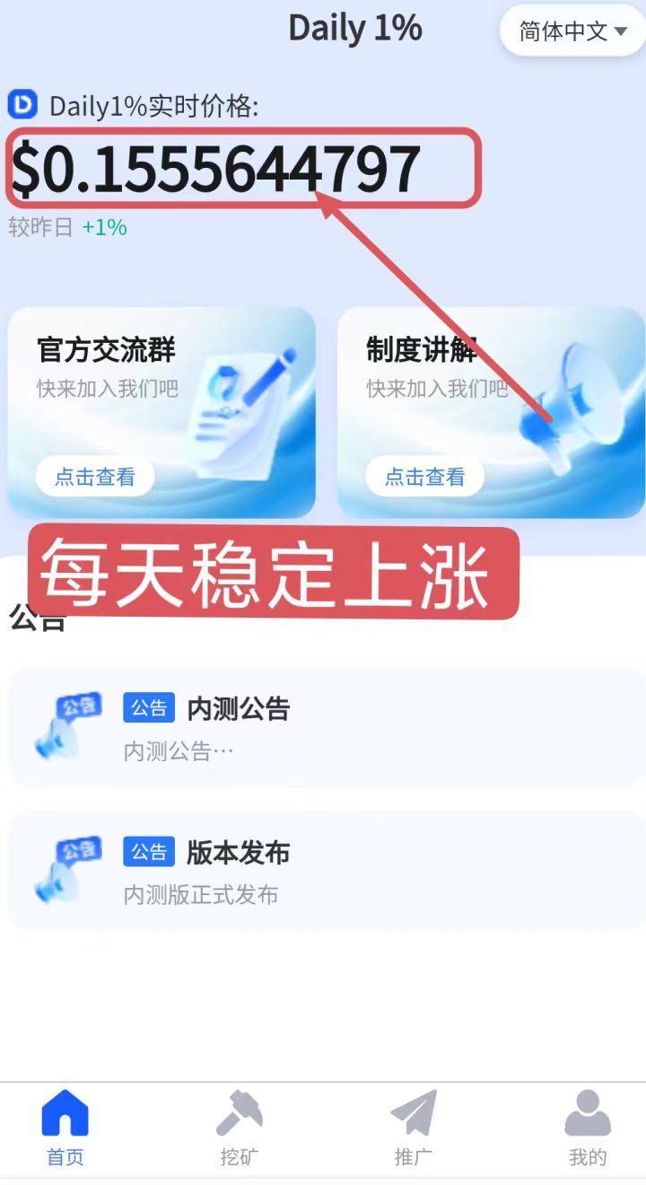 Daily1% 首码内测锁粉,零撸神盘。每天上涨1%,月化30%以上!!