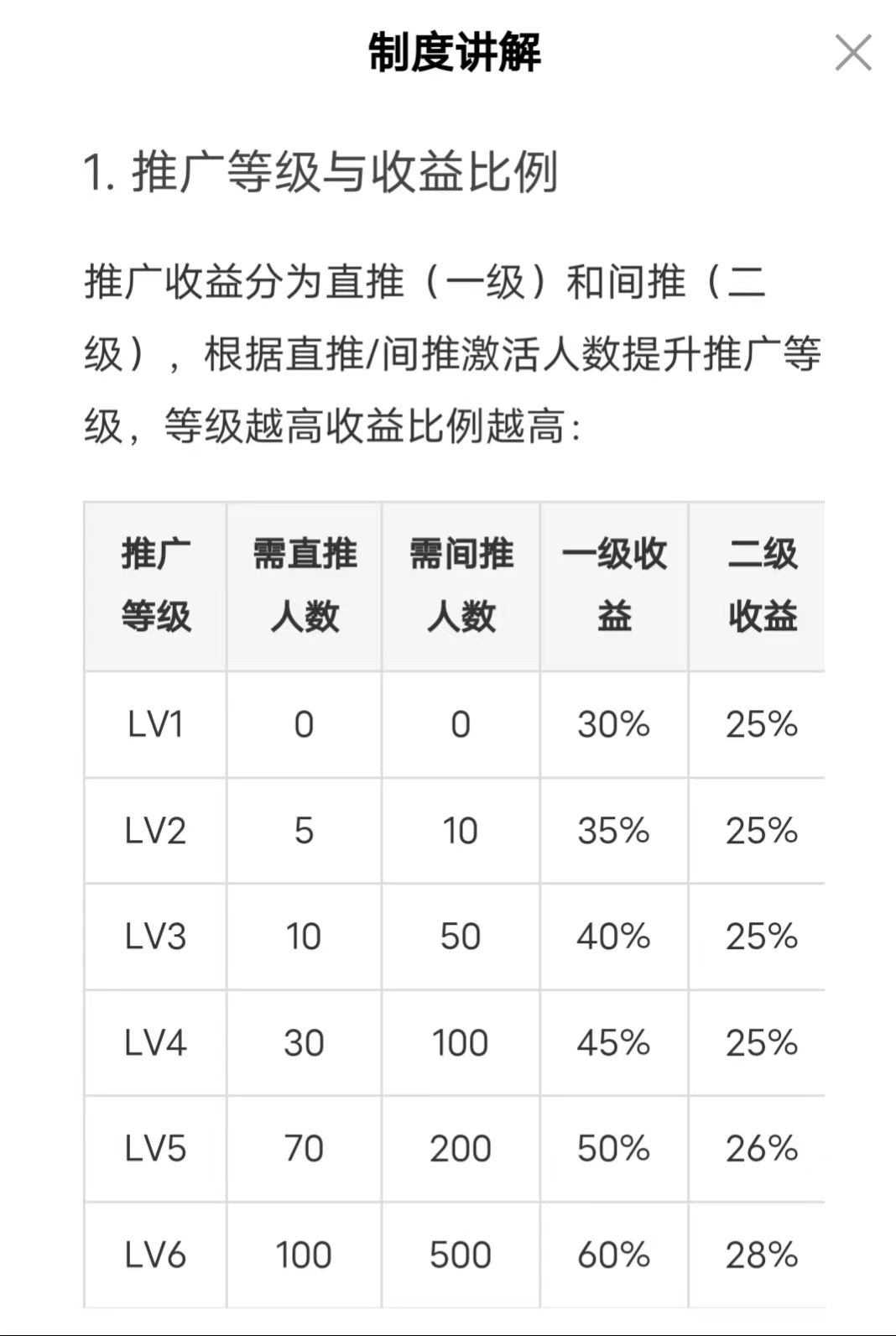 推广收益最高一代70%,二代30%,共计100%下级贡献收益!!