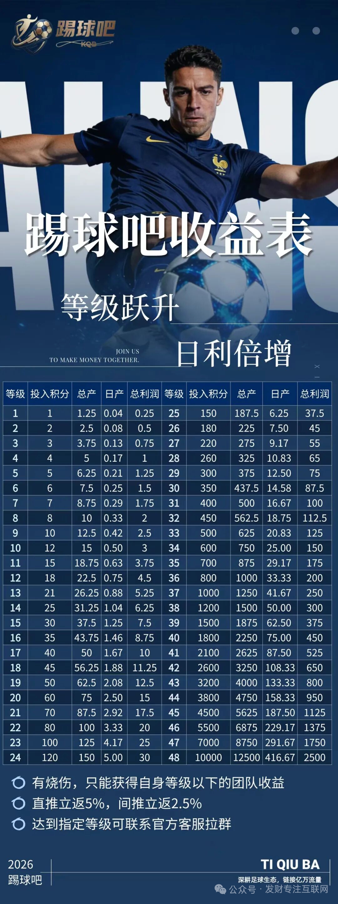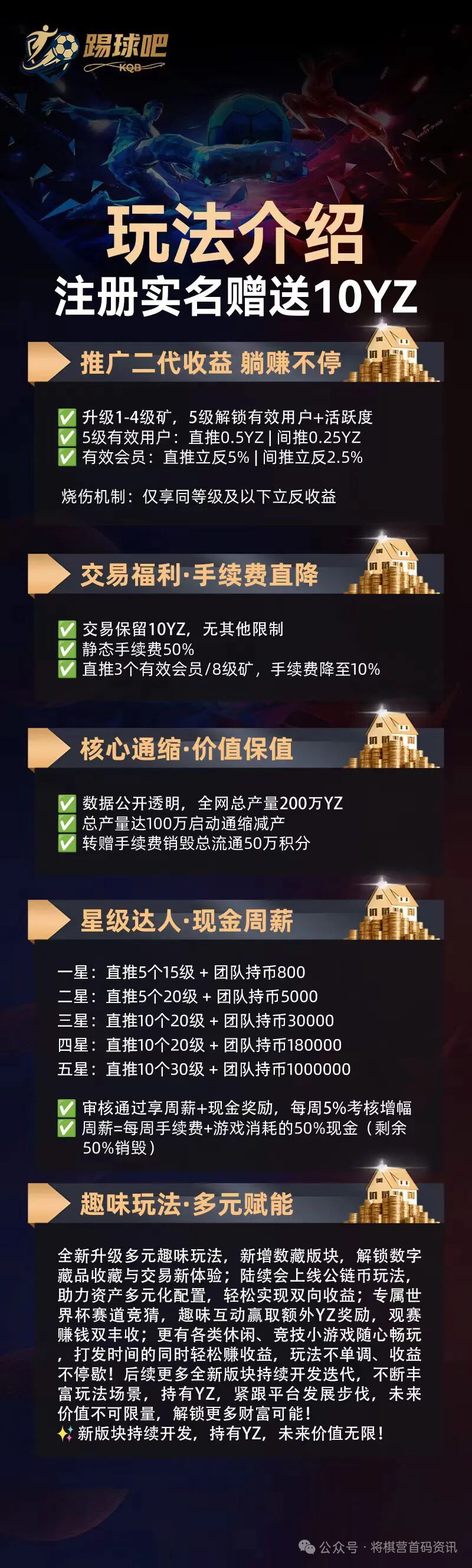 首码踢球吧才出, 高佣+扶持团队,零门槛参与:注册即送10YZ,无需投入即可开启挖矿、升级天梯,真正实现零撸也能赚。