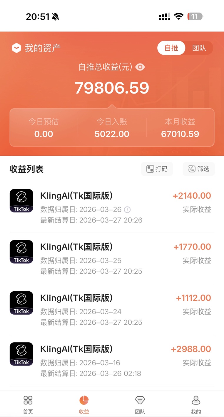 尤其是领推上线的可灵Kling国际版,很多人一天收益都干到了四五位数,国际版国内版都是可以推广的,免费注册领推就可以开通领推推广权限。