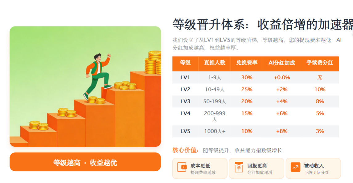 ✅ LV1–LV5 等级体系,越做越赚