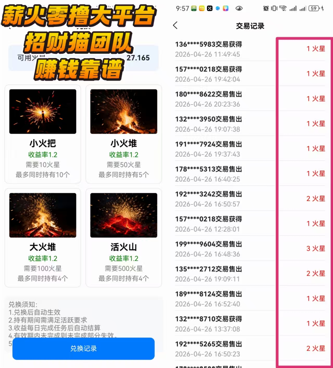 2、新用户有新手火把,25天产出10个,直接兑换小火把,小火把每天收益0.4个加上新手火把0.4个每日收益会变成0.8个,持续5天30 天总产出12+2=14=154米