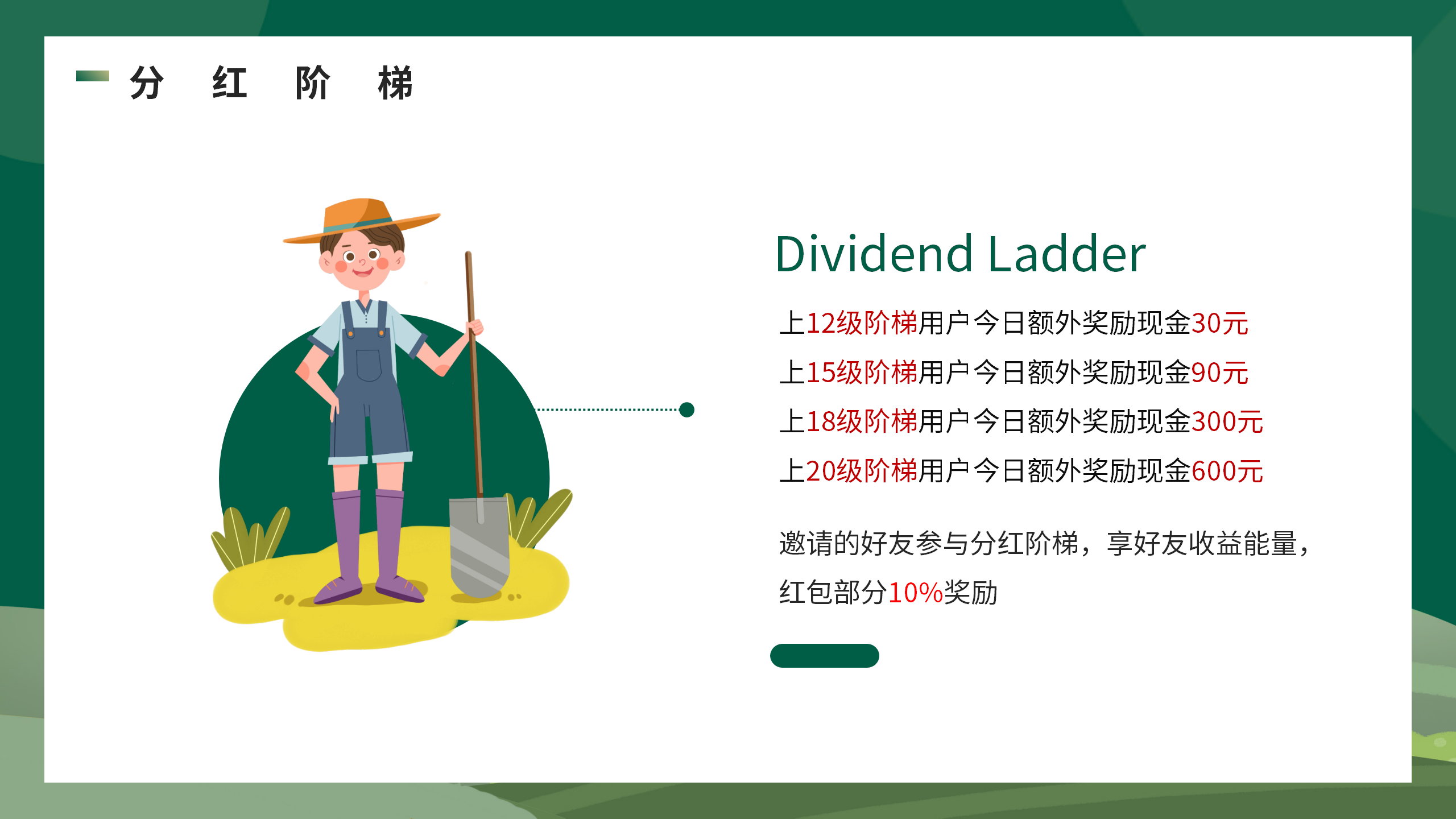 邀请的好友参与分红阶梯,享受能量、红包10%收益奖励