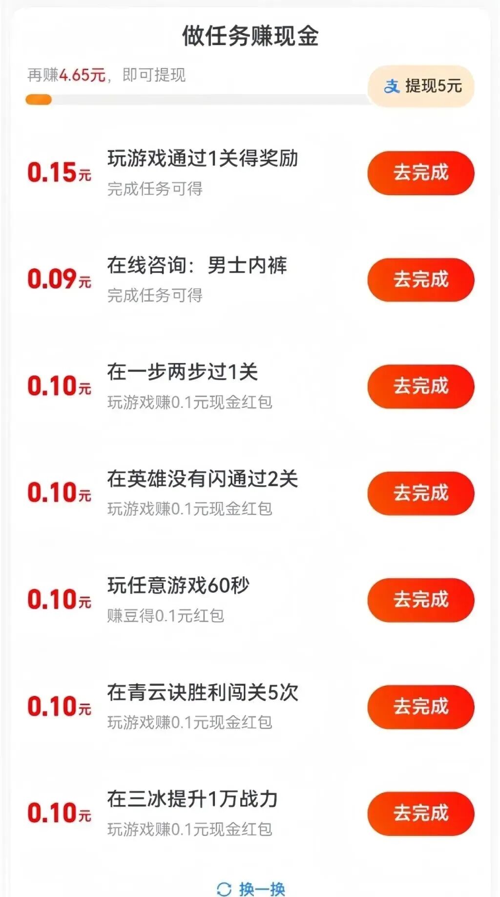 基本都是玩游戏类的,一点不费脑,完成一个就能拿钱!