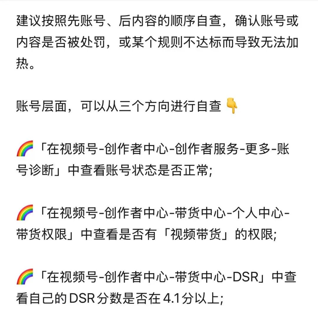赶紧去看一下尤其是最新发的这一条讲视频号带货,没有办法加热应该怎么自查,还有怎么整改的讲的非常的详细怎么自查自查的三个方面