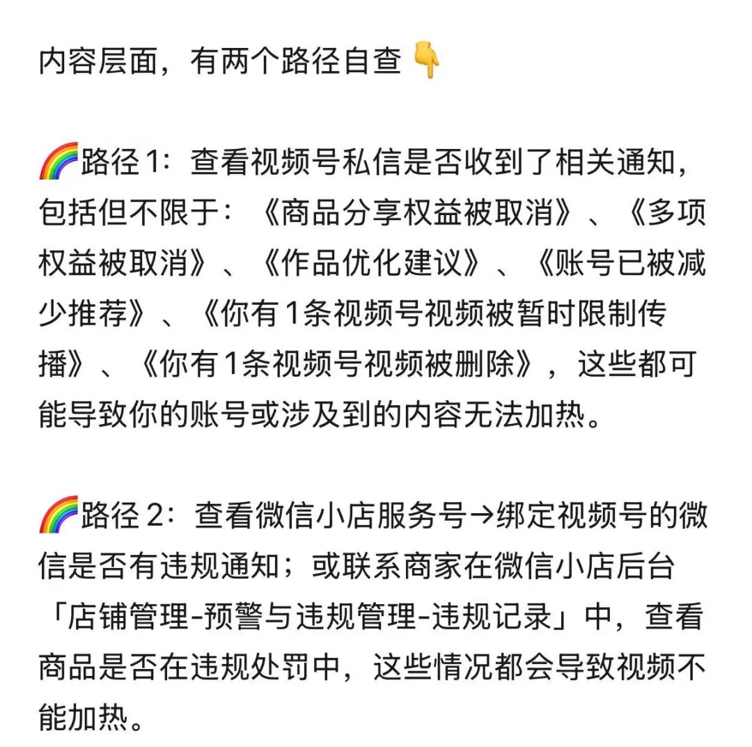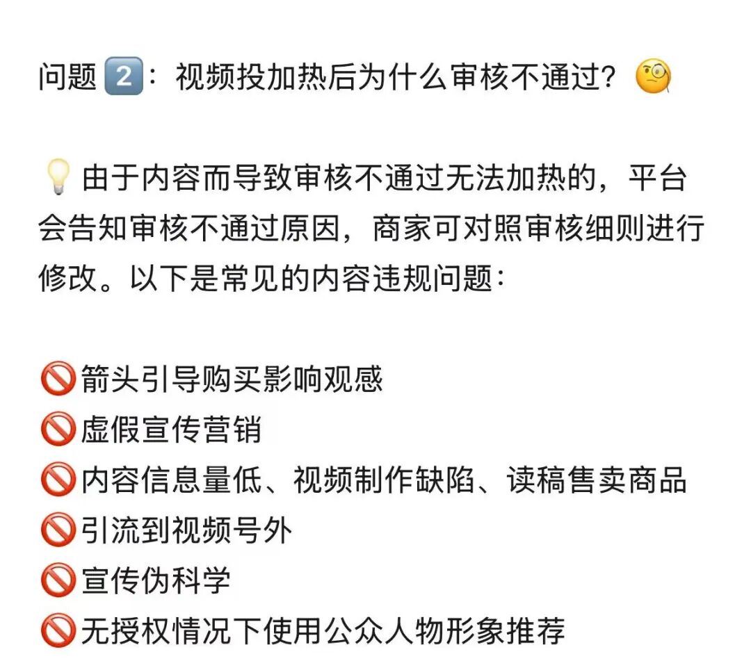 都要去看一下内容层面有没有违规怎么去查看违规消息,怎么查询违规记录,还有视频加热不通过的原因也列的比较清楚