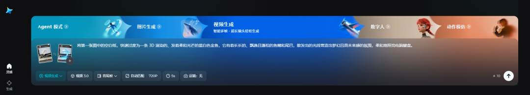 1.选择”视频生成”,输入提示词:写实摄影,一台联想笔记本电脑前,第一人称视角拍摄,从上空缓慢降落一张纸巾,缓落掉在画面正中央。