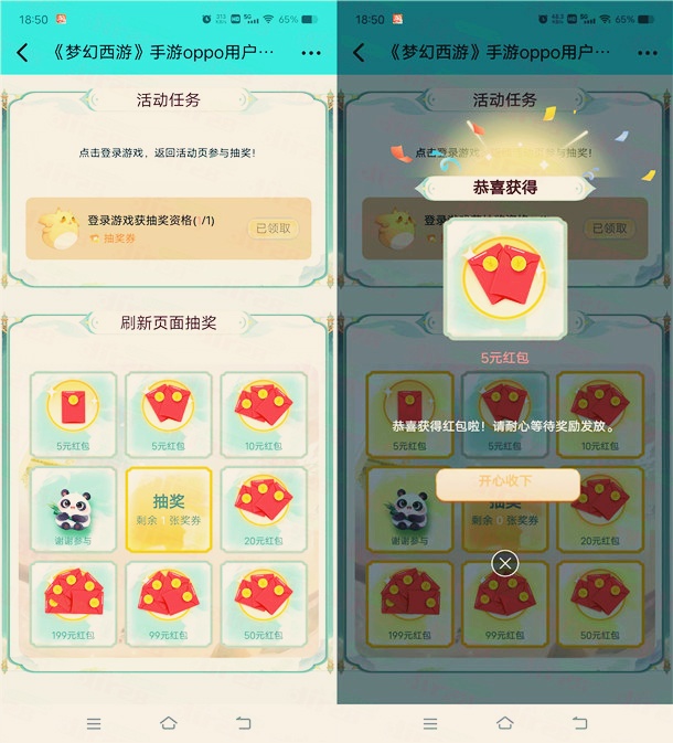 正文 网易梦幻西游手游登陆抽5-199元现金红包,亲测中5元不秒到 首码推荐 V管理员 /昨天 /162 阅读 1005 梦幻西游举办的回归享特权手游登陆抽最高199元现金红包活动,打开“网易大神”APP进去活动里,登陆一次梦幻西游手游就可以抽奖1次,刚中5元,等到账了之后就可以在“网易大神”APP我的收益里面提现,不秒到。 手机扫下面码进入活动: 活动时间:2025年10月1日-10月15日 手机扫码跳转到“网易大神”APP活动里,登陆一次梦幻西游手游就可以抽奖1次,刚中5元,等到账了之后就可以在“网易大神”APP我的收益里面提现,不秒到。 投诉/删帖
