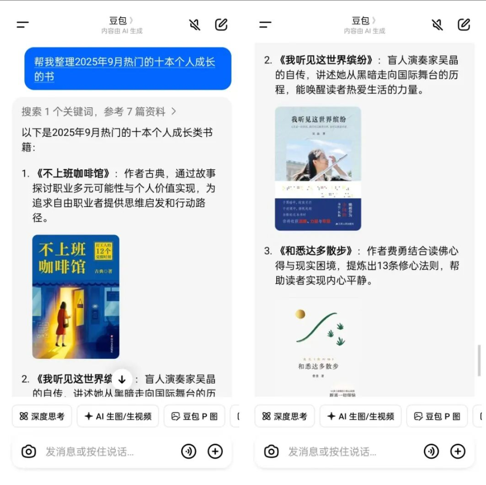 比如在手机上打开豆包,直接让它帮你整理出9月份最火的十本书。选热门书有个好处:发相关内容更容易被系统推荐,曝光自然就高了。