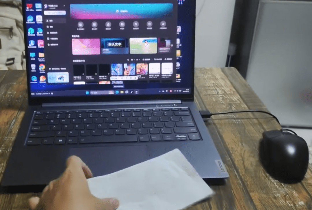 选择纸巾刚好掉落在电脑屏幕这个卡点的画面,