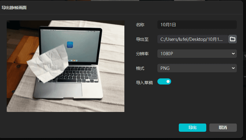 导出静帧图片,