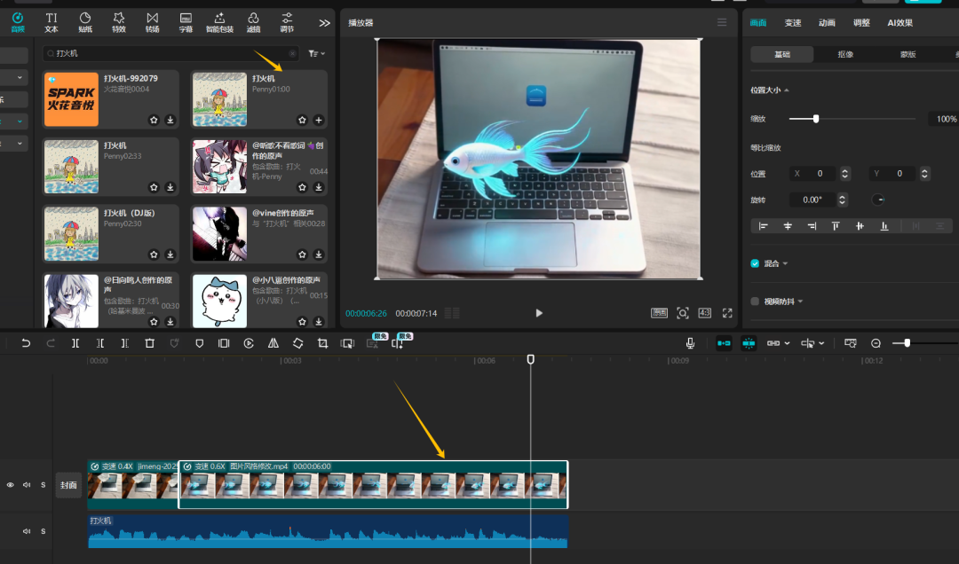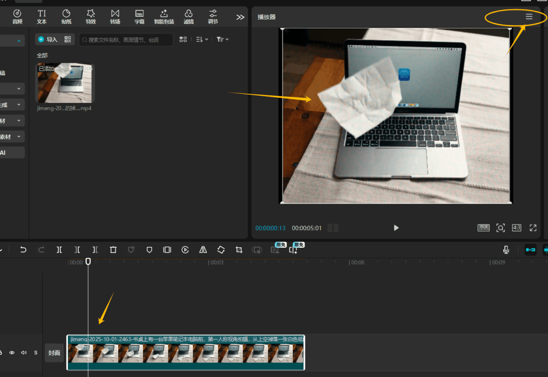 然后回到剪映,