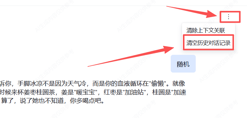 使用智能体的时候需要注意的一点在你完成一次对话以后,重新生成的时候记得将历史记录清空任何AI,如果多次对话,后面的内容都容易跑偏