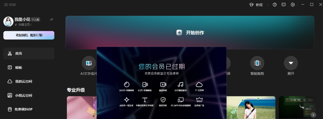 然后添加一个背景音乐,滤镜,导出来就行了哎,会员到期了。方法就是这样,我先去找个便宜的会员开通一下。