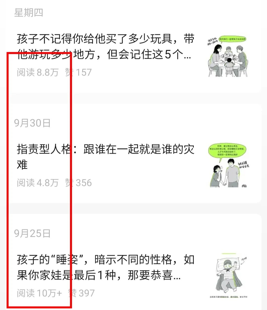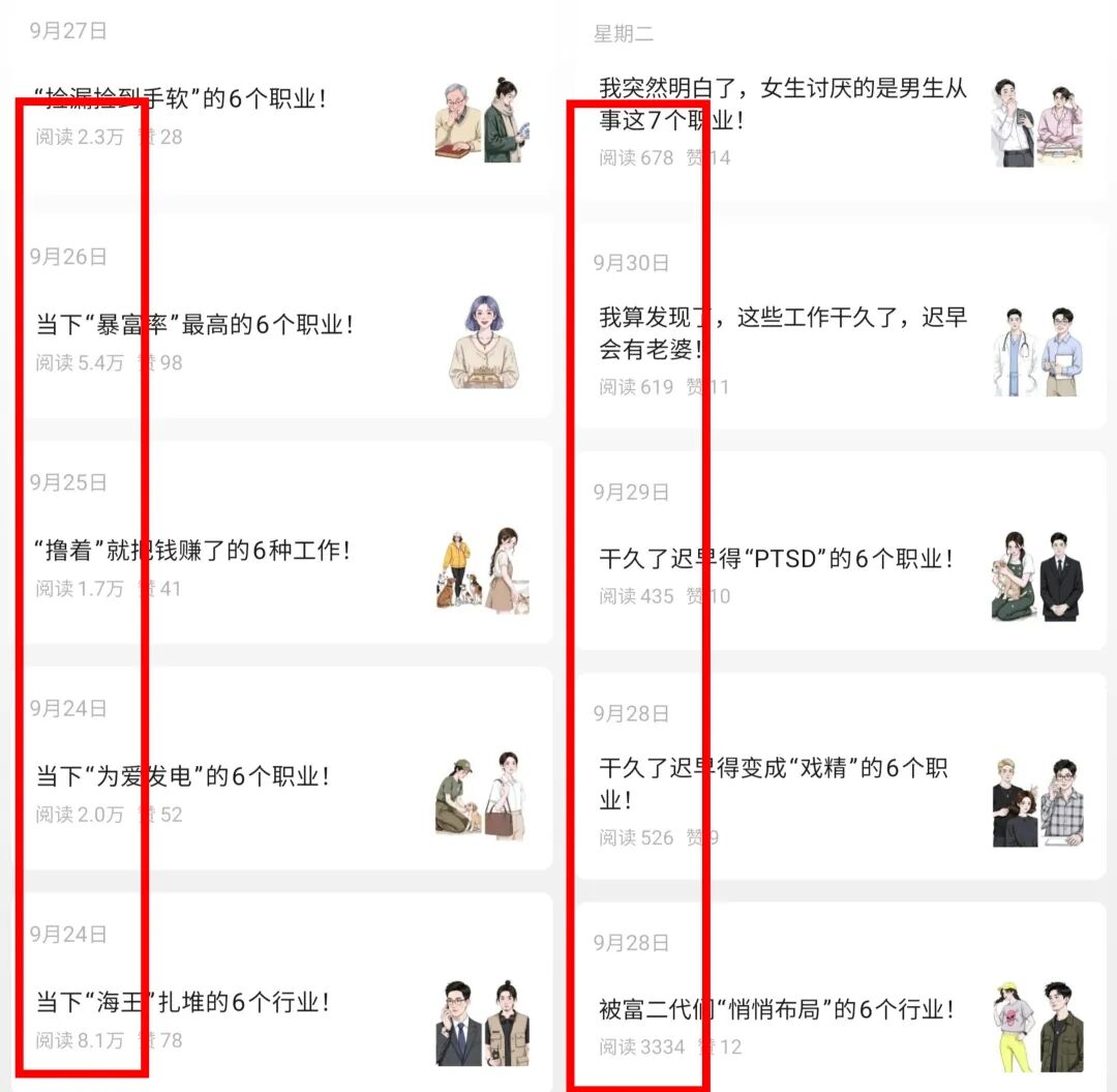 比如下面这个号,九月二十几号之前阅读量还篇篇上万,突然之间就下降到不足1000了,类似于这样的账号还有特别多,我这里就放了一个。