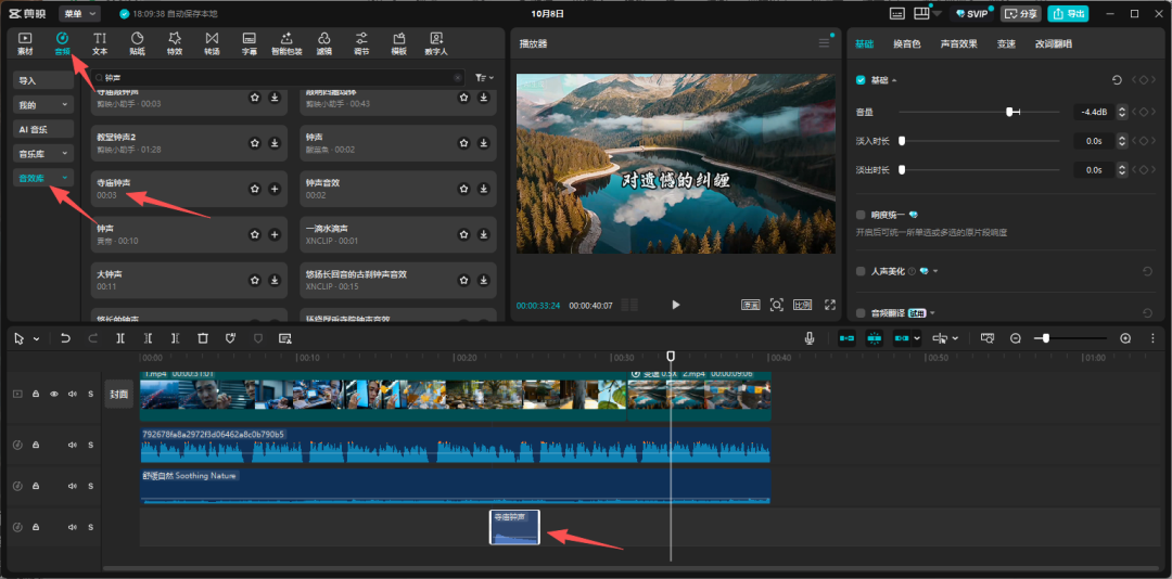 生成完成咱们下载下来就行,也可以利用首尾帧一张一张的去做视频哈不想用AI生成的视频,也可以自己去网上下载这种禅意的素材下一步是剪辑,剪辑之前记得把配音配好哦,我用的是配音蜂
