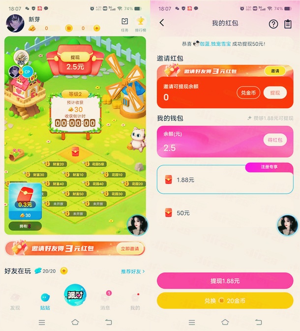 正文 贴贴APP简单领取1.88元微信红包,亲测秒推微信零钱 首码推荐 V管理员 /昨天 /170 阅读 1010 贴贴APP的一个简单的领1.88元红包的活动,下载贴贴APP,手机号码登陆后,点底部【贴贴】随便升级点几下就行,然后会送3元左右红包,直接提现1.88元到微信,提现后目前秒推,提现需实名,如果之前注册过的是没有1.88元提现选项的。 手机扫下面码进入活动: 活动时间:结束日期未知 进入活动页面下载打开“贴贴”APP,手机号码登陆,点底部【贴贴】随便升级点几下就行,然后直接提现1.88元到微信秒推送,提现需实名,如果之前注册过的是没有1.88元提现选项的。 投诉/删帖