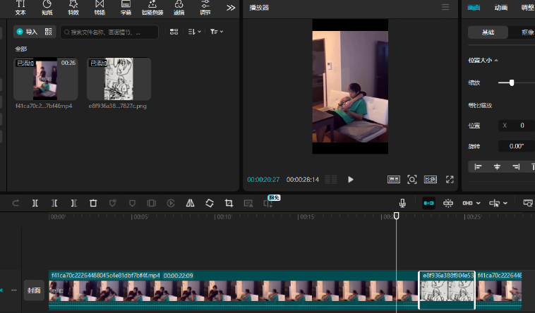按照这个方法重复生成多个画面,把生成的画面到剪映中替换掉刚刚定格的部分。把时长拉短,最后添加一个搞笑的BGM就可以导出去发布了。